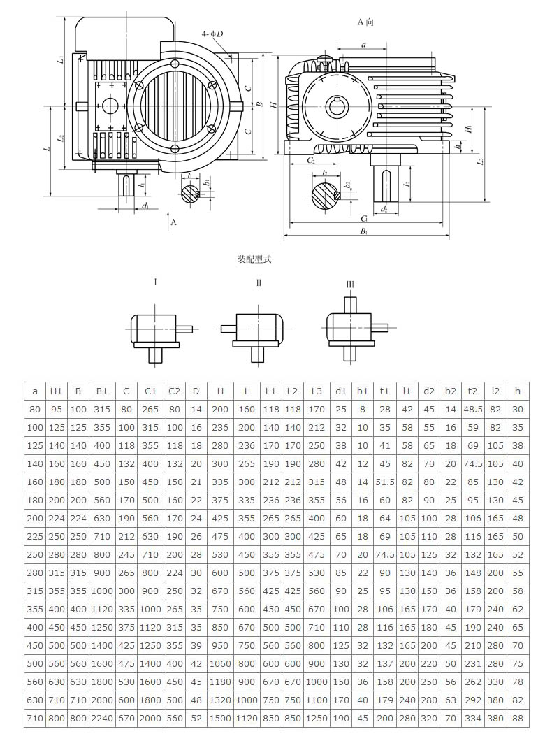 (3) PWS型—蜗杆在蜗轮之侧的平面二次包络环面蜗杆减速器;
