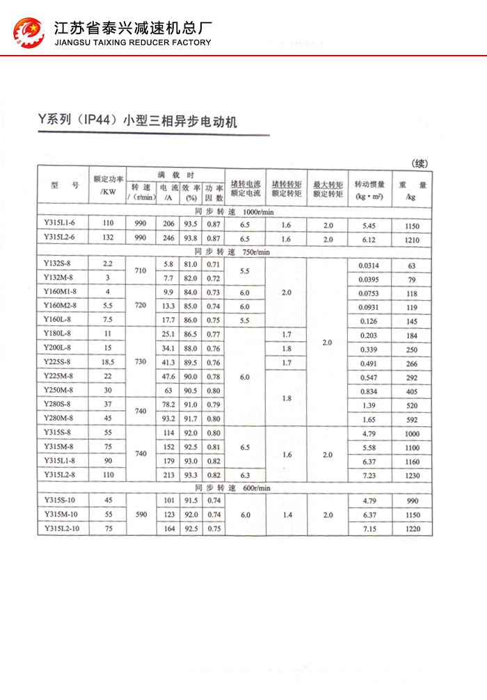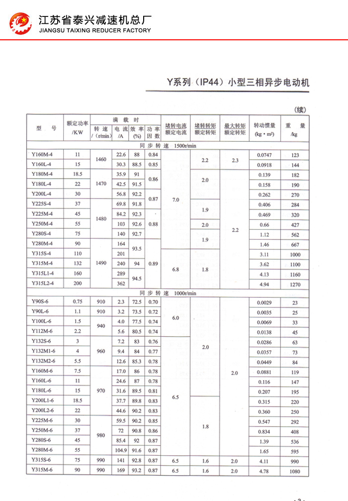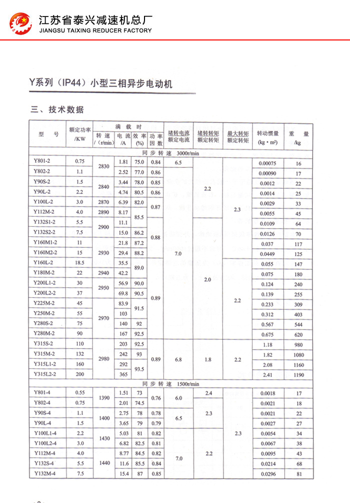 Y系列IP44小型三相异步电动机1-7