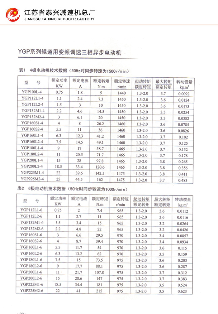 YGP系列辊道用变频调速三相异步电动机36-43